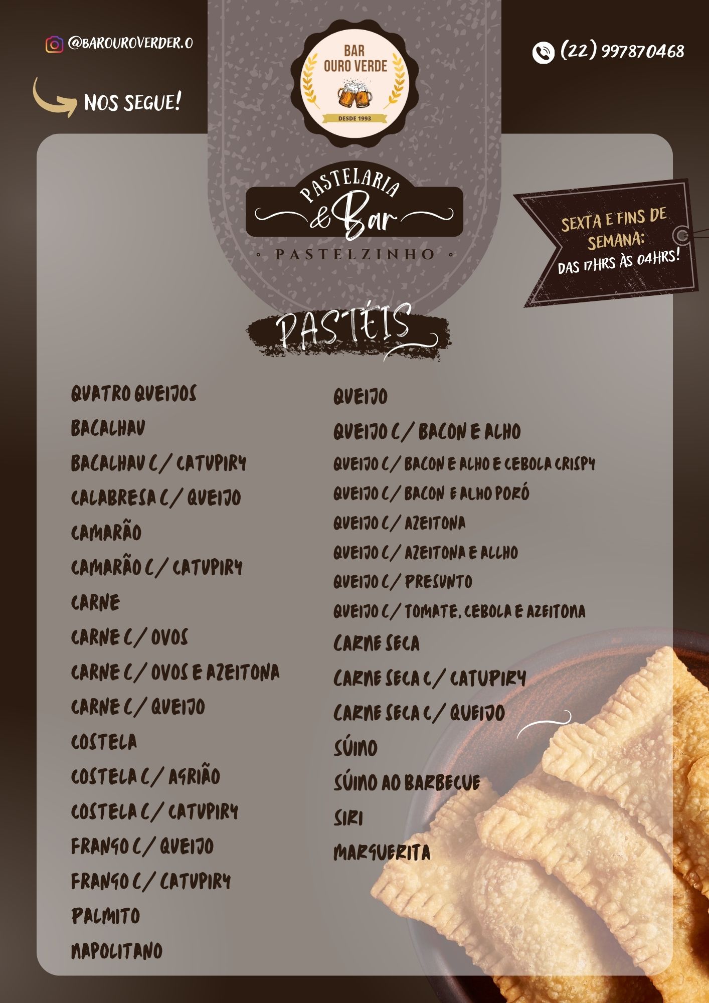 Copyright © 1993- 2024 Bar Ouro Verde – Pastelzinho Rio das Ostras – Design By Wolver